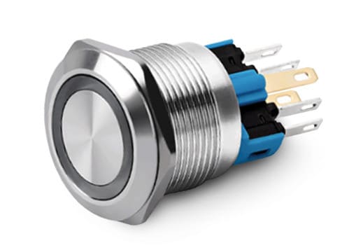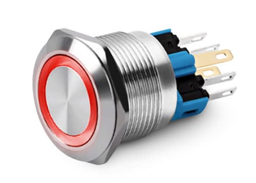 ALPHA ELETTRONICA - Interruttore antivandalo ø22mm bistabile luminoso Rosso - 24V - 2P - 1x N.C. + 1x N.A. - 5A@250Vac - 6 term. a saldare 330-078L-1