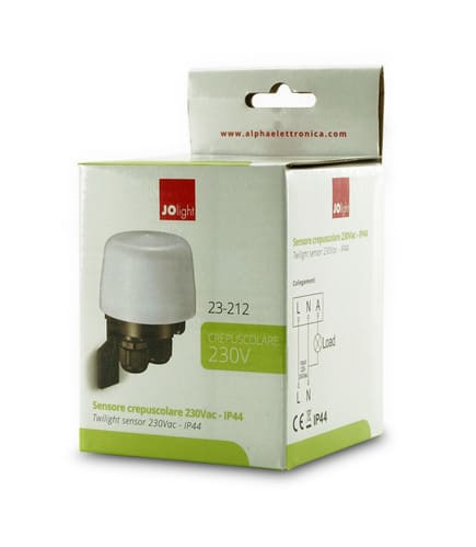 ALPHA ELETTRONICA - Interruttore crepuscolare 230Vac - IP44 - Soglia luminosità ambiente regolabile 23-212