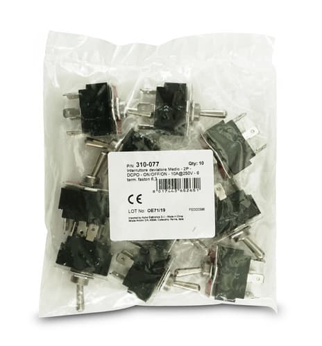 ALPHA ELETTRONICA - Interruttore deviatore Medio - 2P - DCPO - ON/OFF/ON - 10A@250V - 6 term. faston 6,3