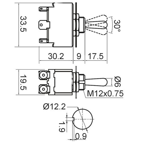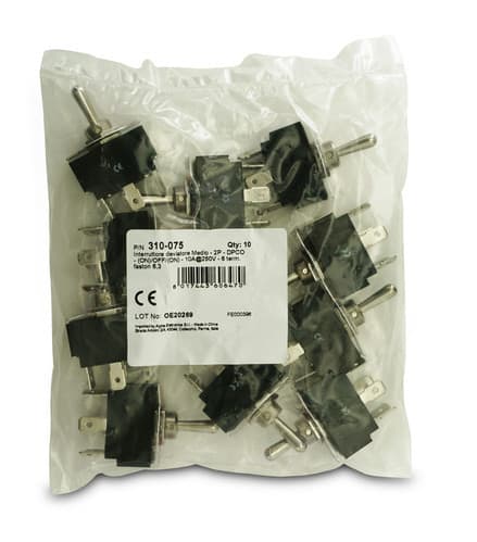 ALPHA ELETTRONICA - Interruttore deviatore Medio - 2P - DPCO - (ON)/OFF/(ON) - 10A@250V - 6 term. faston 6,3