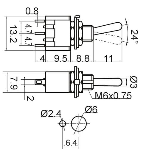 Foro fissaggio: ø6mm