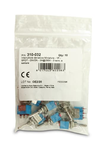 ALPHA ELETTRONICA - Interruttore deviatore Miniatura - 1P - SPDT - ON/ON - 3A@250V - 3 term. a saldare 310-032