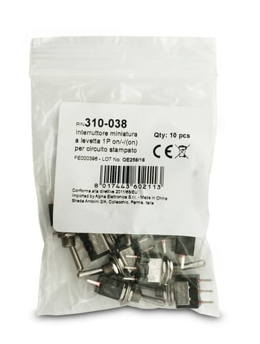 ALPHA ELETTRONICA - Interruttore deviatore Miniatura - 1P - SPDT - (ON)/ON - 3A@250V - 3 term. cs 310-038