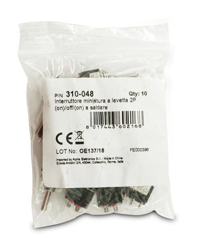 ALPHA ELETTRONICA - Interruttore deviatore Miniatura - 2P - DPCO - (ON)/OFF/(ON) - 3A@250V - 6 term. a saldare 310-048