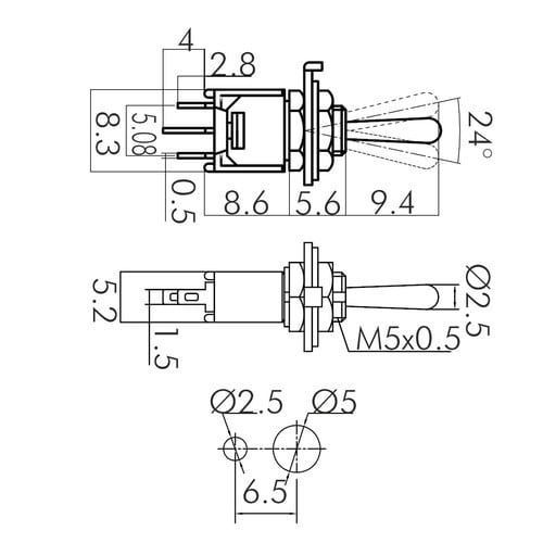 ALPHA ELETTRONICA - Interruttore deviatore Subminiatura - 1P - SPCO - ON/OFF/ON - 1.5A@250V - 3 term. a saldare 310-006