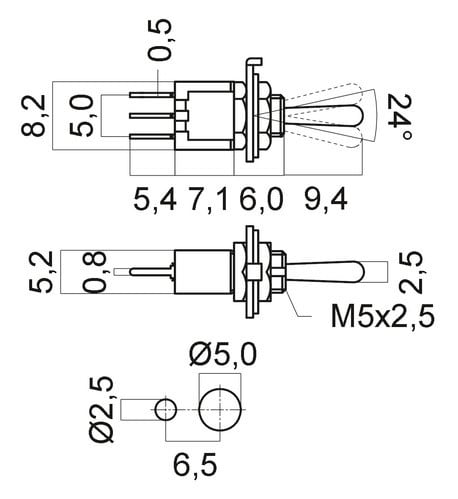 ALPHA ELETTRONICA - Interruttore deviatore Subminiatura - 1P - SPCO - ON/OFF/ON - 1.5A@250V - 3 term. cs 310-008