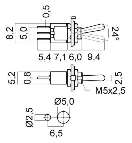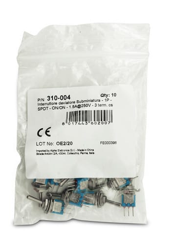ALPHA ELETTRONICA - Interruttore deviatore Subminiatura - 1P - SPDT - ON/ON - 1.5A@250V - 3 term. cs 310-004