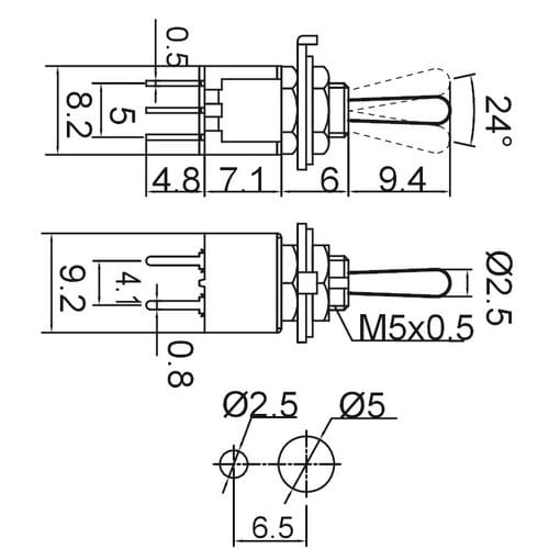 ALPHA ELETTRONICA - Interruttore deviatore Subminiatura - 2P - DPCO - ON/OFF/ON - 1.5A@250V - 6 term. cs 310-016