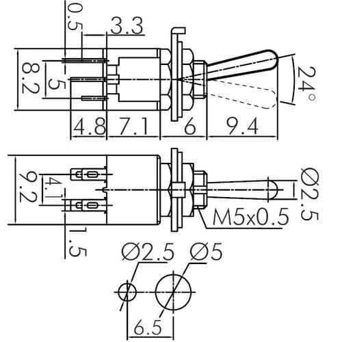 ALPHA ELETTRONICA - Interruttore deviatore Subminiatura - 2P - DPDT - ON/ON - 1.5A@250V - 6 term. a saldare 310-010