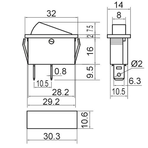 Foro fissaggio: 10.6mm x 30.3mm