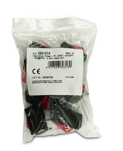 ALPHA ELETTRONICA - Interruttore - Rosso - 1P - SPST - ON/OFF - 15A@250V - 2 term. faston 6,3
