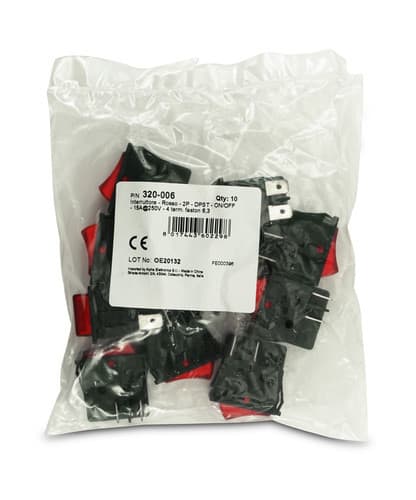 ALPHA ELETTRONICA - Interruttore - Rosso - 2P - DPST - ON/OFF - 15A@250V - 4 term. faston 6,3 320-006