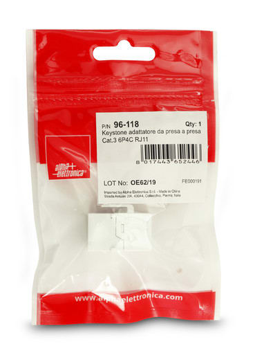 ALPHA ELETTRONICA - Keystone adattatore da presa a presa Cat.3 6P4C RJ11 96-118