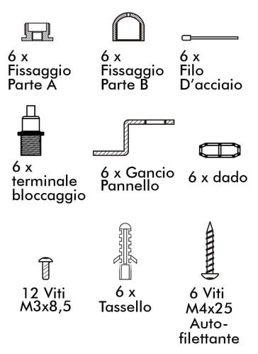 ALPHA ELETTRONICA - Kit di fissaggio a sospensione per pannelli led JO395/30120 - 6 corde JO395-SUP06