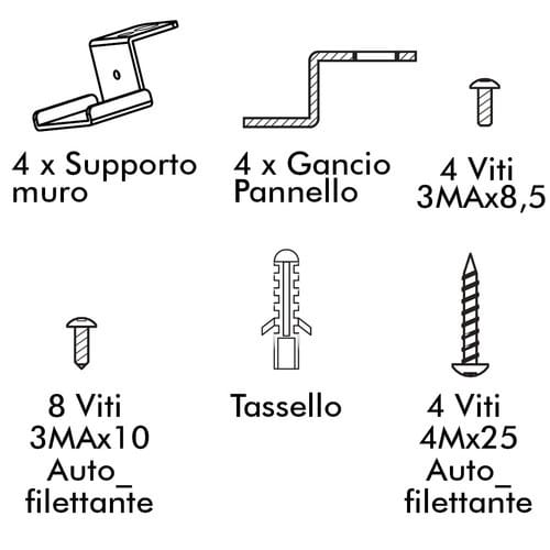 Per i pannelli di lunghezza di 120cm occorre acquistare 2 Kit in quanto i punti di fissaggio dovranno essere almeno 6.