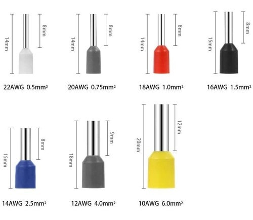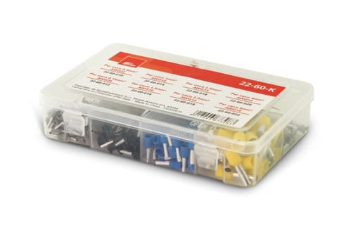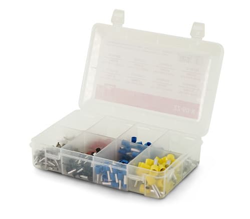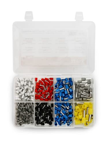 Pratica scatoletta con otto scomparti di puntalini capicorda a bussola per cavi da 0,5 a 6,0mm².