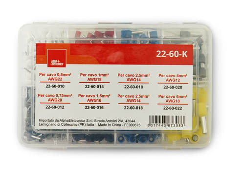 ALPHA ELETTRONICA - Kit di terminali a bussola preisolati per cavi da 0,5mm² a 6,0mm² - 450pz assortiti