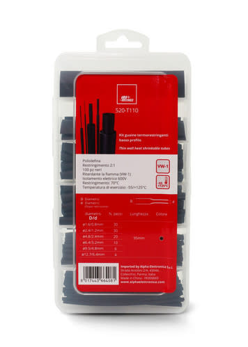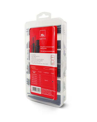 ALPHA ELETTRONICA - Kit guaine termorestringenti basso profilo - Poliolefina - Restringimento 2:1 - 100 spezzoni da 95mm - nere 520-T110