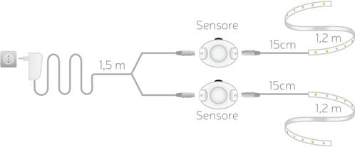ALPHA ELETTRONICA - Kit striscia Led BEDlight doppio 2 x 1,2m 24Vdc con alimentatore e sensore di movimento JO350/912WW