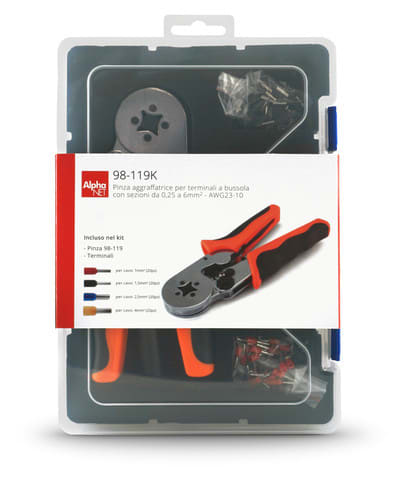 ALPHA ELETTRONICA - Kit valigetta pinza 98-119 aggraffatrice per terminali a bussola con sezioni da 0,25 a 6mm² - AWG23-10 98-119K