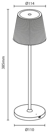 Lampada da tavolo a LED a batteria. Interruttore Touch illuminato nella parte superiore. Emissione di luce calda verso il basso. La lampada integra una batteria agli ioni di litio per una durata della carica maggiore. Disponibile in versione bianca, grigia, grigia scura e verde.