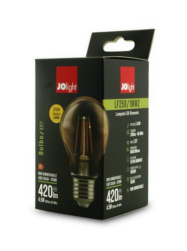 ALPHA ELETTRONICA - Lampada a filamento led bulbo - 230Vac - E27 - 4,5W - Ambrata - Bianco caldo LF250/1WW2