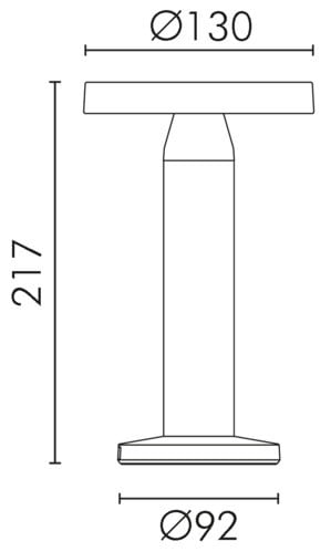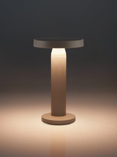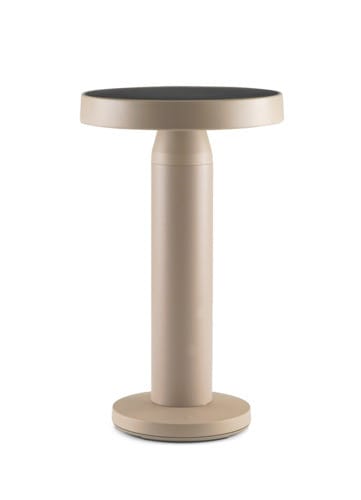 Lampada da tavolo a LED a batteria con pannello solare. Interruttore Touch nella base della lampada. Emissione di luce calda verso il basso. La lampada integra una batteria agli ioni di litio per una durata della carica maggiore. Disponibile nella colorazione Sabbia.