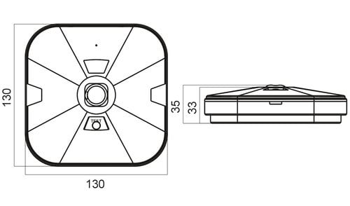 Dimensioni: 130mm x 130mm x 35mm
