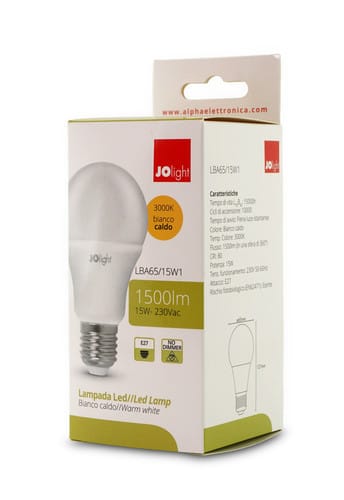 ALPHA ELETTRONICA - Lampadina a Led E27 - 15W - 230Vac - Bianco caldo LBA65/15W1
