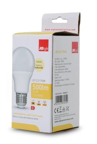 ALPHA ELETTRONICA - Lampadina a Led E27 - 5,5W - 12/24Vdc - Bianco naturale LB122/1NW