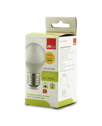 ALPHA ELETTRONICA - Lampadina a Led E27 - 6W - 230Vac - Bianco caldo LBG45/6WW