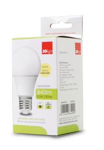 ALPHA ELETTRONICA - Lampadina a Led E27 - 8,5W - 230Vac - Bianco naturale LBA60/8NW