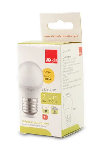 ALPHA ELETTRONICA - Lampadina a Led E27 - 8W - 230Vac - Bianco caldo LBG45/8W1