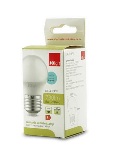 ALPHA ELETTRONICA - Lampadina a Led E27 - 8W - 230Vac - Bianco freddo LBG45/8PW
