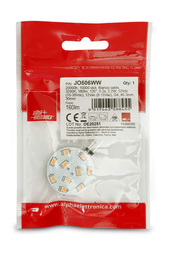 ALPHA ELETTRONICA - Lampadina a Led G4 - 1,5W - 12Vac/dc - Bianco caldo JO506WW