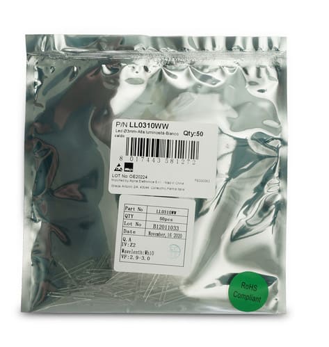 ALPHA ELETTRONICA - Led Ø3mm - Alta luminosità - Bianco caldo LL0310WW
