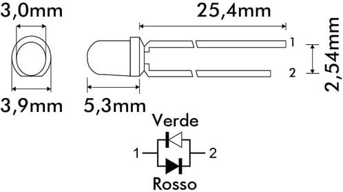ALPHA ELETTRONICA - Led Ø3mm - Lente diffusa - Rosso/Verde - 2 pin LL0344RG-D