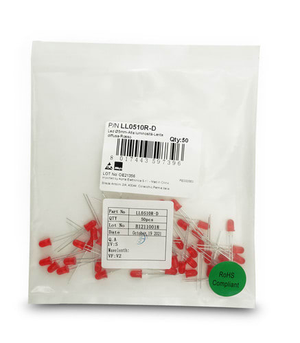 ALPHA ELETTRONICA - Led Ø5mm - Alta luminosità - Lente diffusa - Rosso LL0510R-D