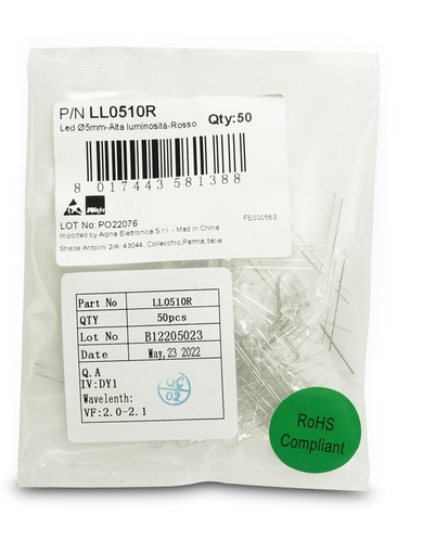 ALPHA ELETTRONICA - Led Ø5mm - Alta luminosità - Rosso LL0510R