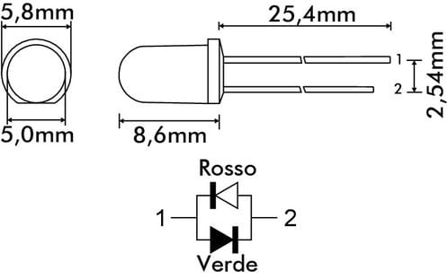 ALPHA ELETTRONICA - Led Ø5mm - Lente diffusa - Rosso/Verde - 2 pin LL0544RG-D