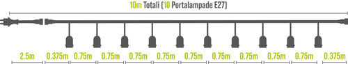 ALPHA ELETTRONICA - Luminaria prolungabile 10m - 10 portalampade E27 - IP44 - Nera - Serie Lumis 23-090/10