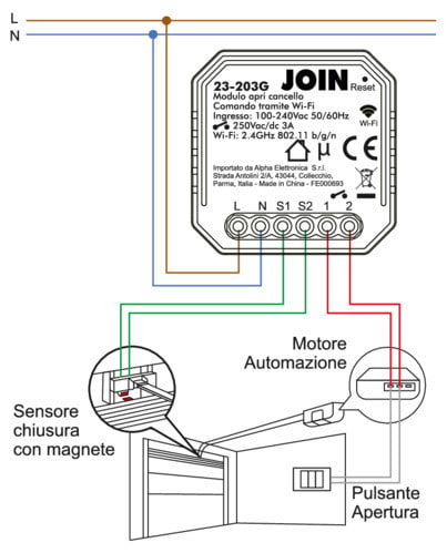 ALPHA ELETTRONICA - Modulo controllo garage Alpha Smart Wi-Fi - 230V - Controllo tramite App Wi-Fi e pulsante - Da incasso 23-203G