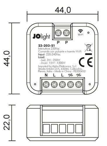 ALPHA ELETTRONICA - Modulo relè passo-passo 230V Wi-Fi 2,4GHz Smart per pulsante - 1x1300W/250W Led - un canale - Da incasso