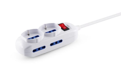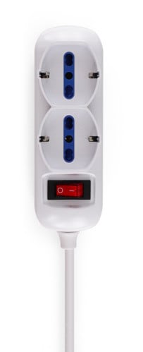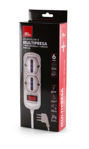 ALPHA ELETTRONICA - Multipresa con 2 prese Universali Italia P40 e 4 Italia bipasso 10-16A - Interruttore - Cavo 3m - Spina 16A a 90° - Bianca 23-045S/14-3