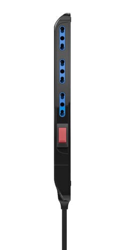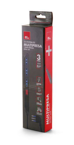 ALPHA ELETTRONICA - Multipresa con 3 prese Italia bipasso 10/16A - Interruttore - Cavo 1,5m - Spina 10A a 90° - Slim - Nera - Protezione sovraccarico 23-050SN/03