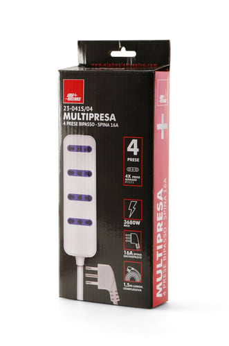ALPHA ELETTRONICA - Multipresa con 4 prese Italia bipasso 10-16A - Cavo 1,5m - Spina 16A a 90° - Bianca 23-041S/04