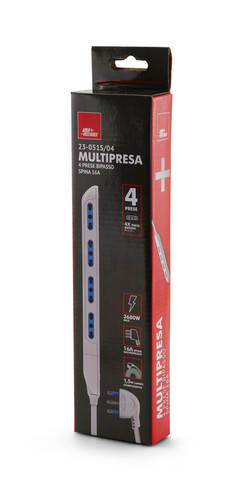 ALPHA ELETTRONICA - Multipresa con 4 prese Italia bipasso 10/16A - Cavo 1,5m - Spina 16A a 90° - Slim - Bianca 23-051S/04