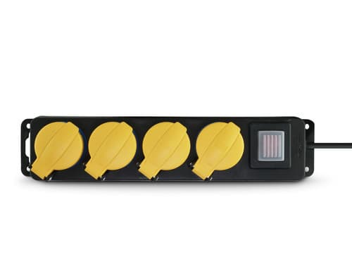 ALPHA ELETTRONICA - Multipresa con 4 prese tedesche - Interruttore - Cavo 1,5m - Spina tedesca - Nera - IP44 23-049/04