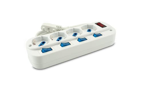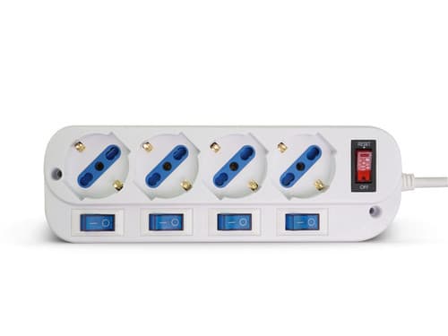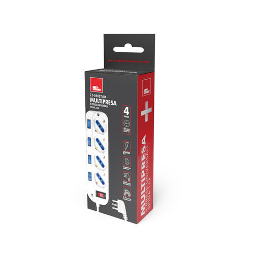 ALPHA ELETTRONICA - Multipresa con 4 prese Universali Italia P40 - Spina 16A a 90° - Con interruttore e protezione sovraccarico - Bianca 23-048ST/04