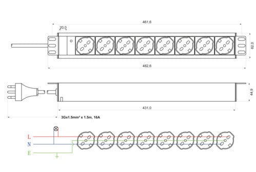 Dimensioni (LxWxH): 482.6 x 62 x 45mm